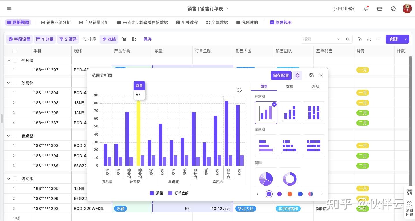 (tips:为了让大家有更直观的感受,文章里的所有图表都是借助伙伴云-仪表盘图表组件/范围分析图生成。)