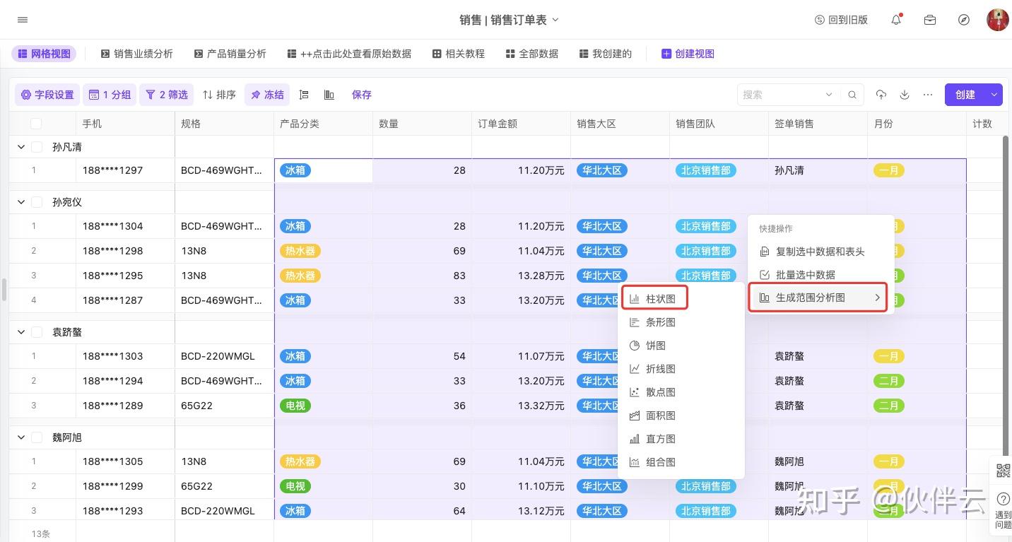 导入表格数据后,只需要框选我们想要分析相应的数据,鼠标右键点击生成范围分析图,选择我们想要的图表即可。