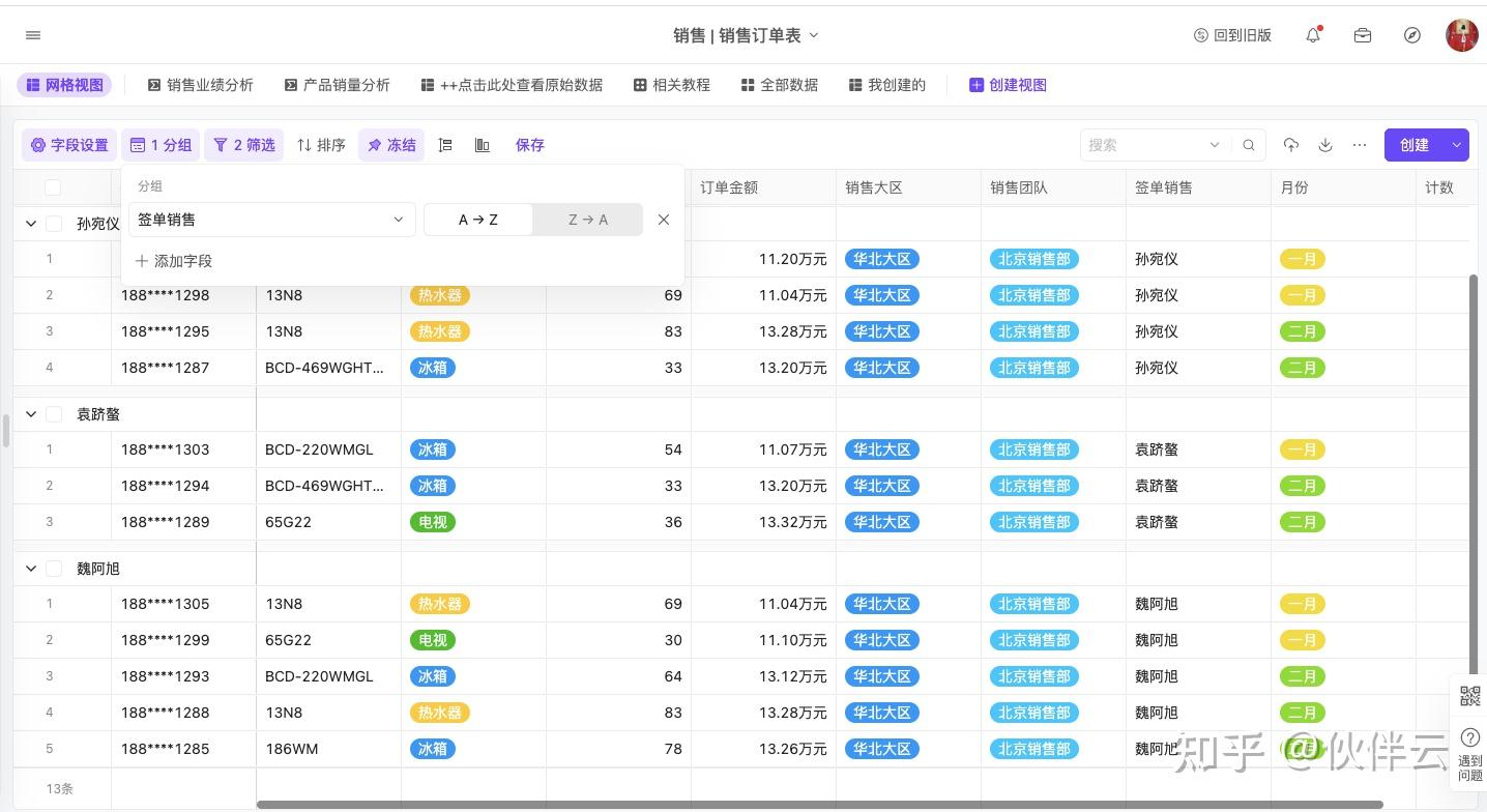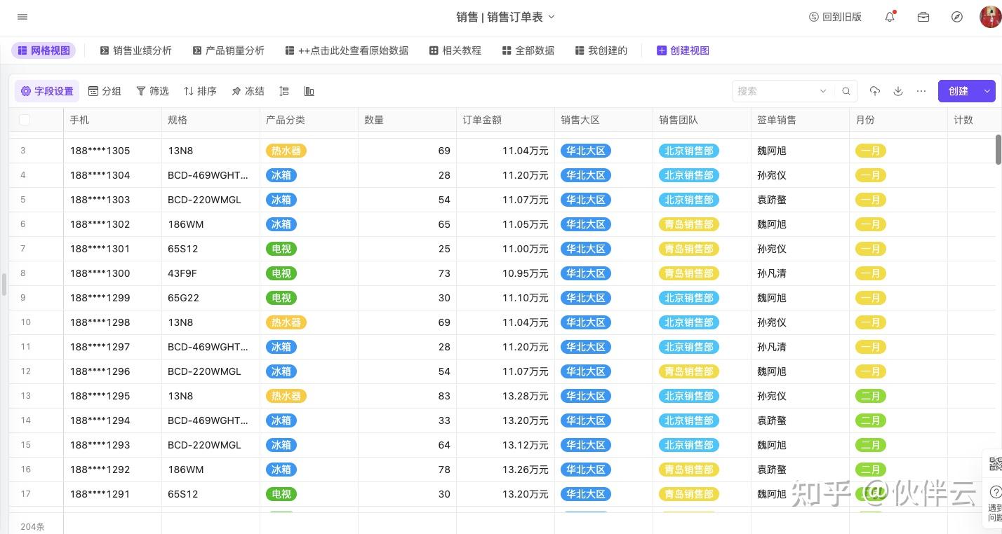 注册登陆伙伴云,进行创建表格-编辑表格数据或者将已经创建好的Excel表格导入伙伴云,创建/导入好的表格,如下图所示。