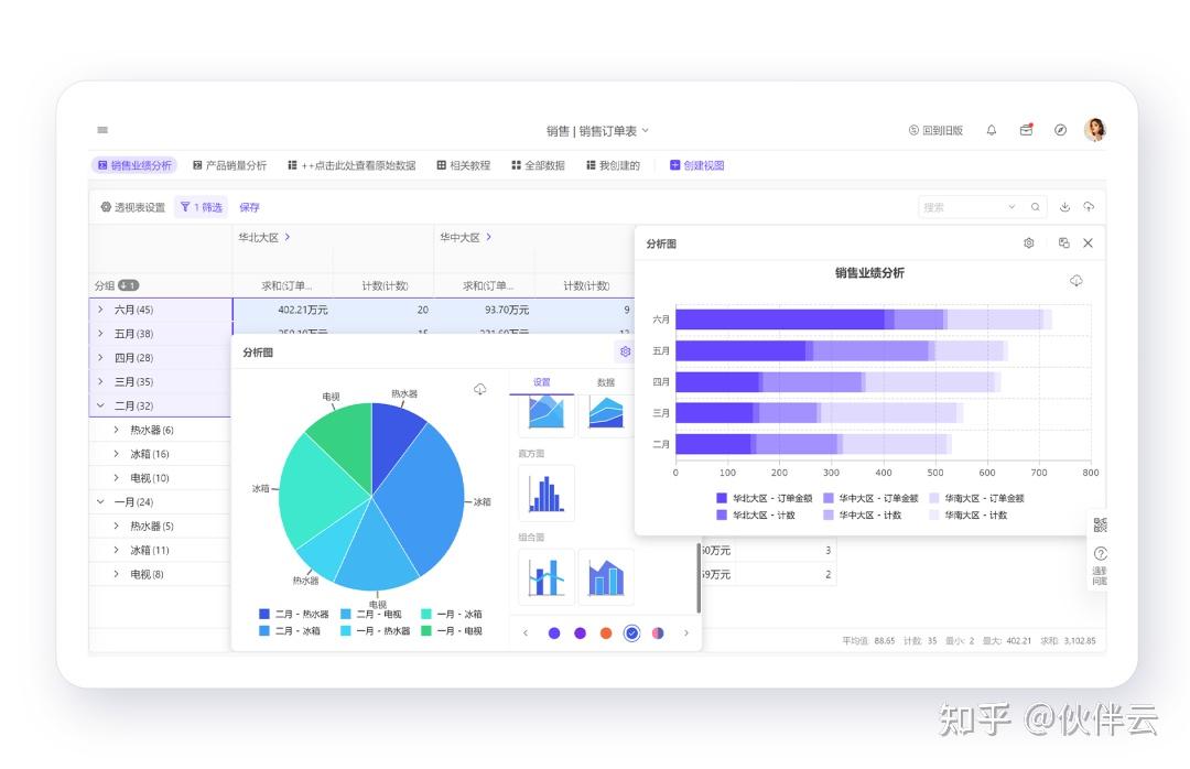 伙伴云包括折线图、面积图、柱状图、条形图、饼图、直方图、面积图、散点图等,8个大类,近20种图形每个都超级精美....