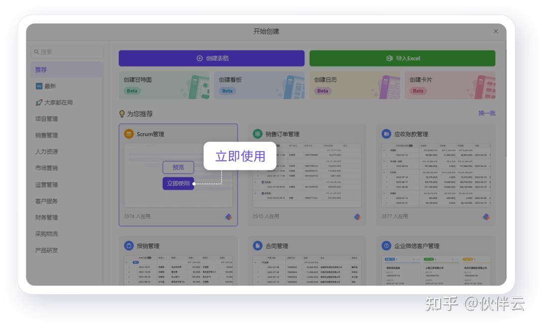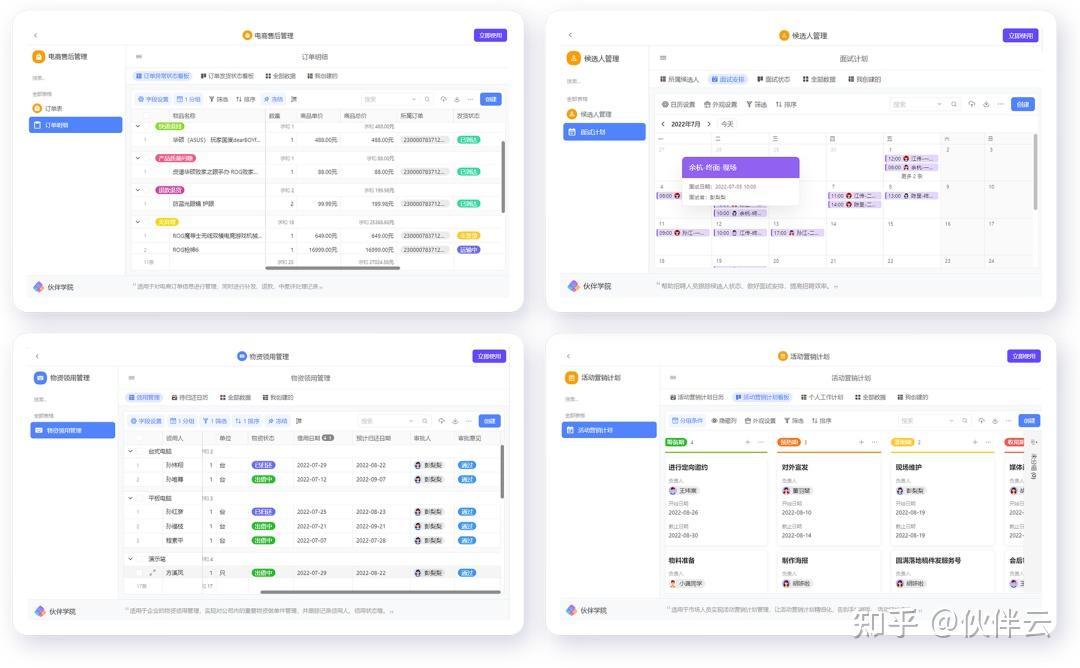 场景包括:人员招聘、活动计划、电商运营、行政物资、报销管理......