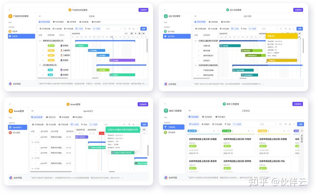 场景包括:项目管理、软件开发、装修工程、产品设计、外部招标、新零售规划......