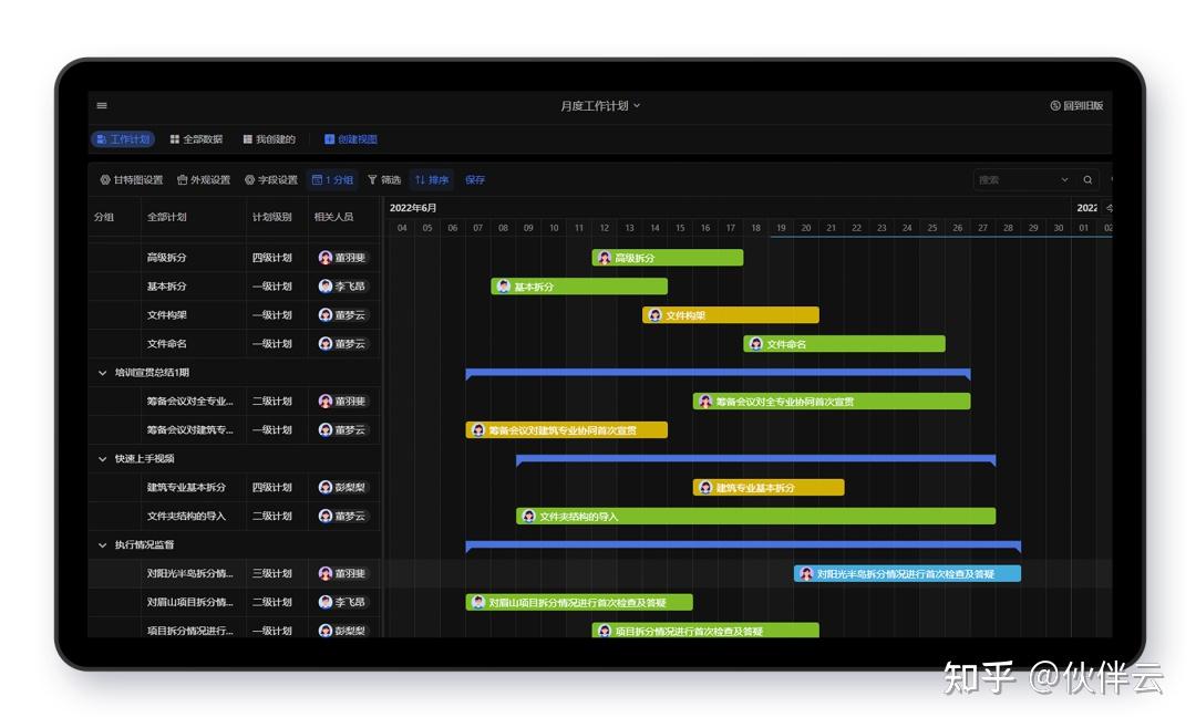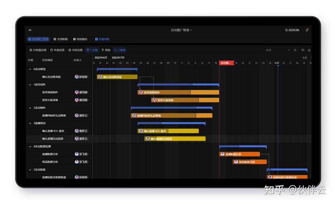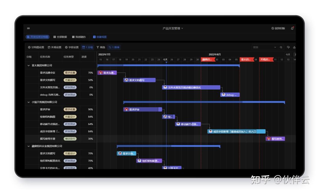 研究了市面上各类甘特图工具后,伙伴云全新推出了——「可关联的甘特图」