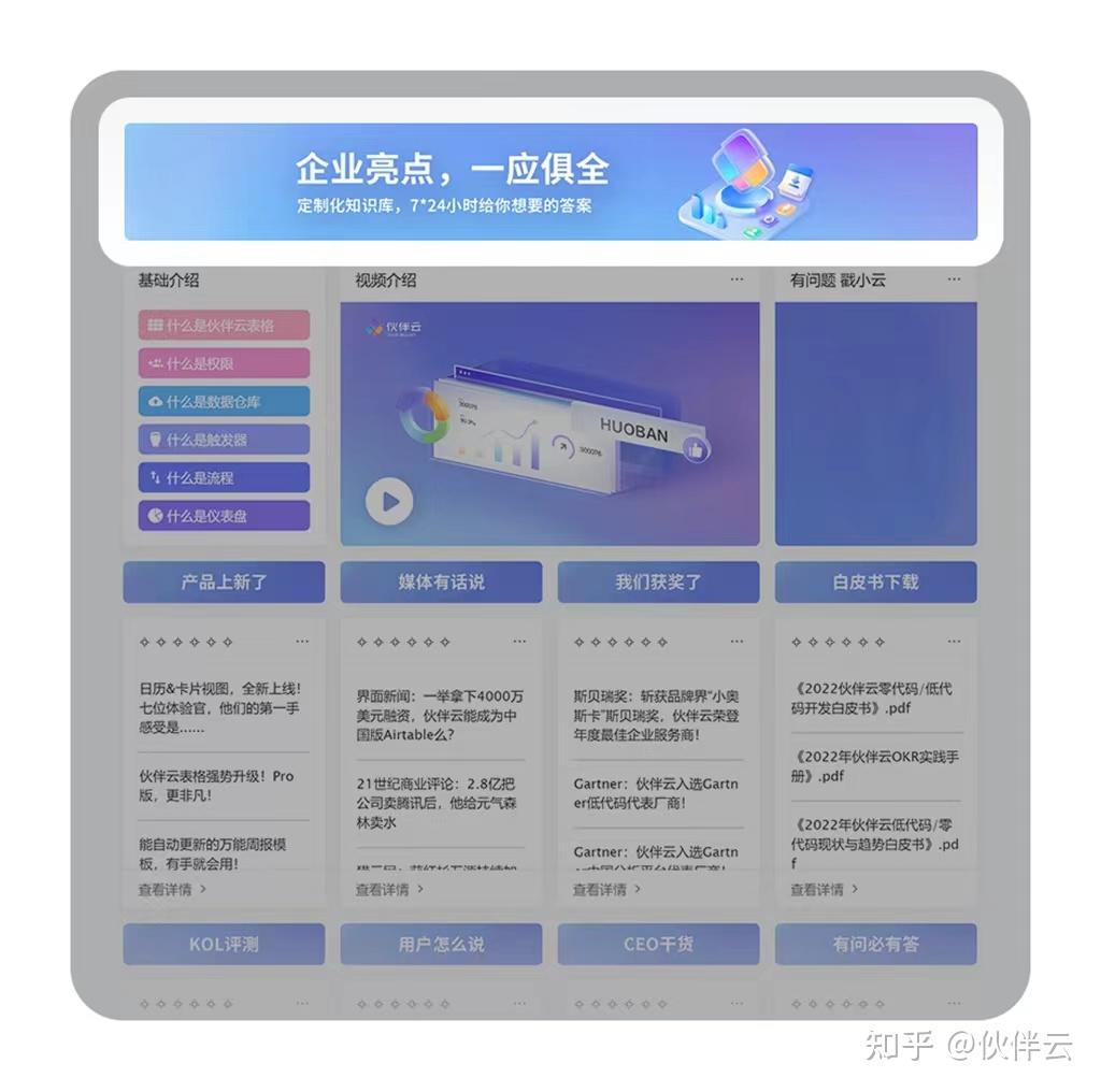 △伙伴云知识库模板展示受众不同,类型也不同。伙伴云「知识库」,既是品牌门面,也是数据后盾。