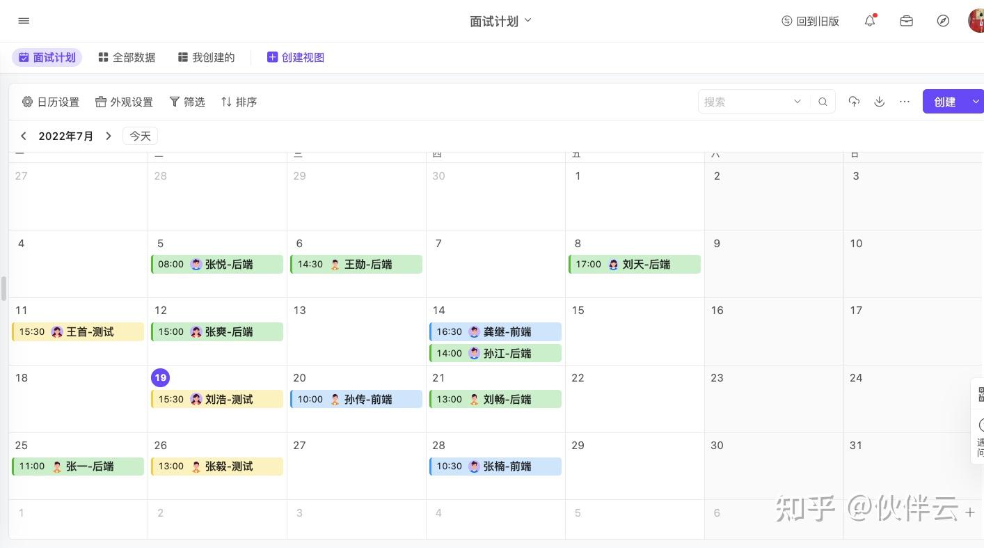 HR想要在紧急招聘的dealine之前不手忙脚乱,就要提前规划“人才地图”,伙伴云日历视图可以帮助HR合理的规划招聘进度、有节奏的进行每次面试的信息和面试安排,不至于遗忘。