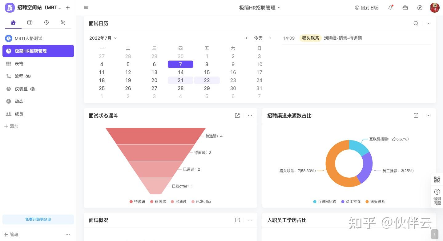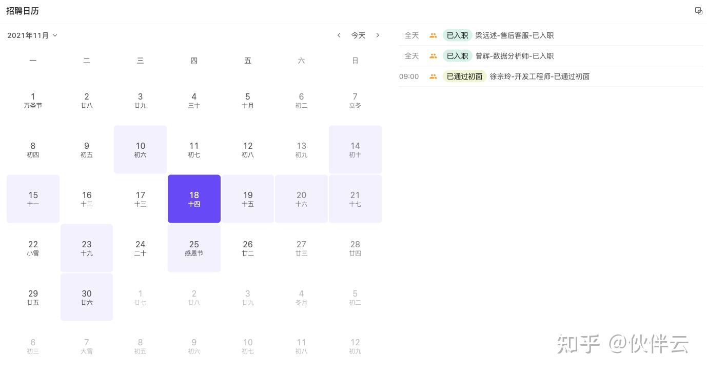 除了日历视图,通过伙伴云仪表盘中的招聘日历,也能让HR贴心规划自己的时间安排。