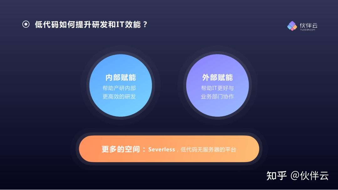 在这个过程中,业务部门和IT部门实现了非常好的良性互动。IT部门变成了对业务部门的真正赋能者,而不是单纯的需求方和被需求方。还有一些中小企业,它可能所有的业务都是新业务,并且没有一个自己的系统。这个时候,从低代码入手就是一个好的选择。
