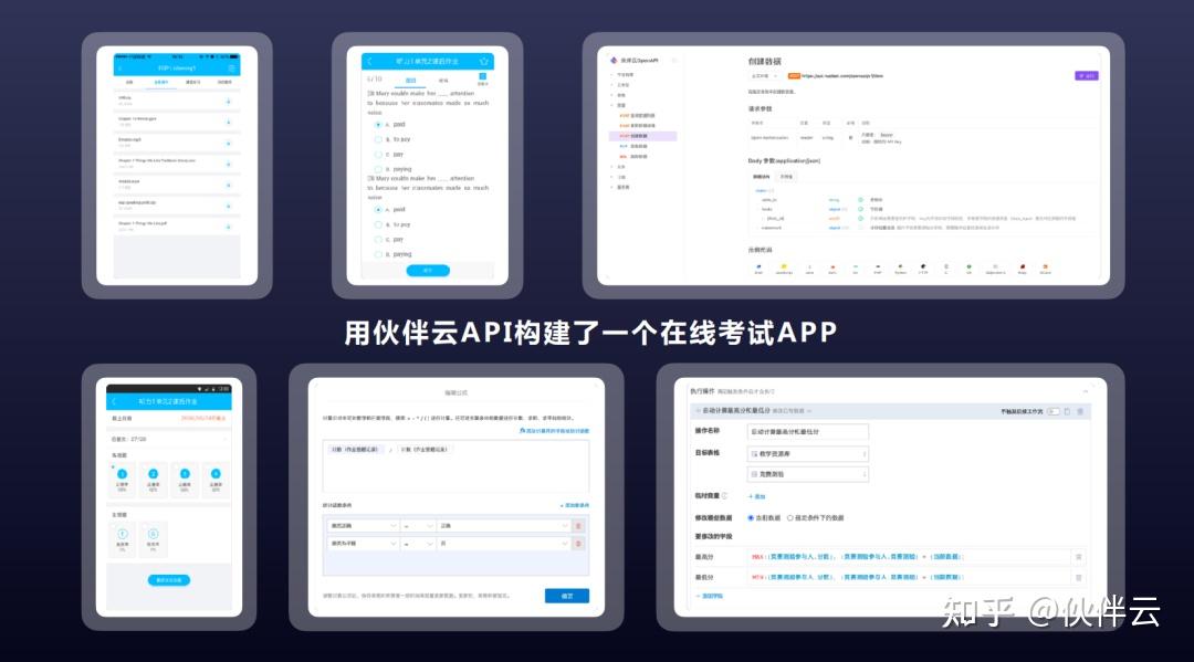 比如有用户就用伙伴做一些 Serverless 的开发,做了一个答题系统。这考试他是怎么做的呢?他是把考试和考题都录入到伙伴云的系统里来,然后他用伙伴云的系统构建了考试成绩和分数。