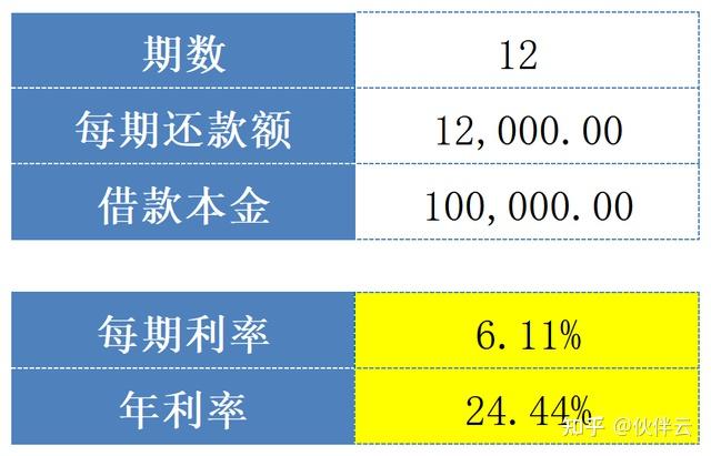 举例 :因资金需要,小乔向周瑜借款10万元,约定每季度还款1.2万元,共计3年还清,那么这个借款的利率是多少呢?