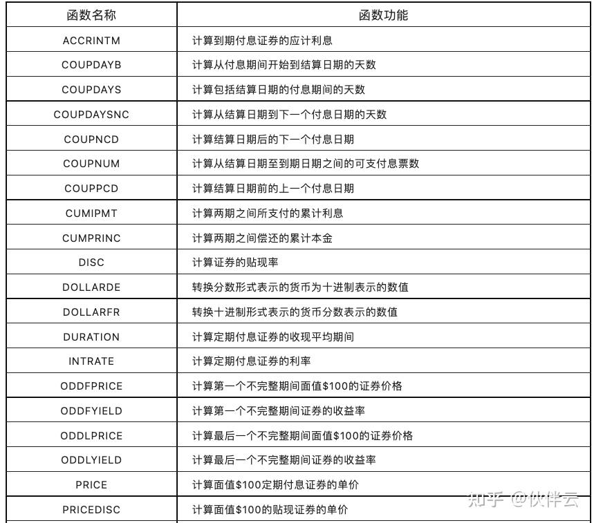 日计数基准类型(basis)--为日计数基准类型。Basis为0 或省略代表US (NASD) 30/360 ,为1代表实际天数/实际天数 ,为2代表实际天数/360 ,为3代表实际天数/365 ,为4代表欧洲30/360。使用这些函数不必理解高级财务知识,只要填写变量值就可以了。下面给出了财务函数列表。