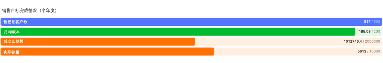 一般最简单、最粗糙的数据就是:销售任务是否完成,完成率多少?当然,还不止如此。