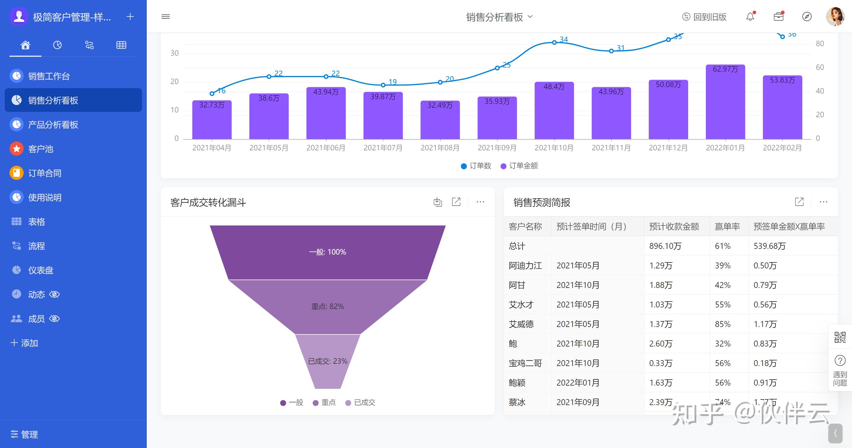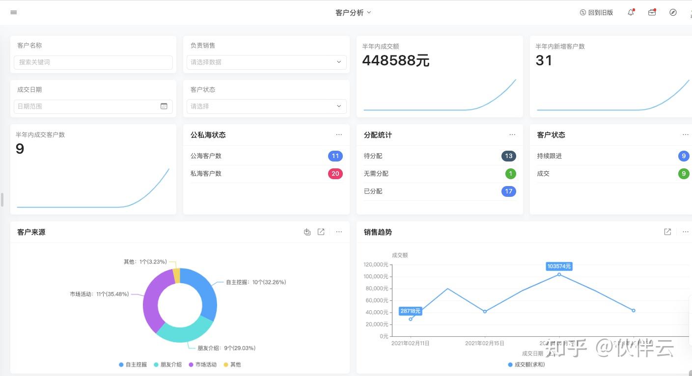 为了让你能够在销售总结会议中脱颖而出,小编用伙伴云仪表盘制作了销售可视化报表,效果如下图所示!