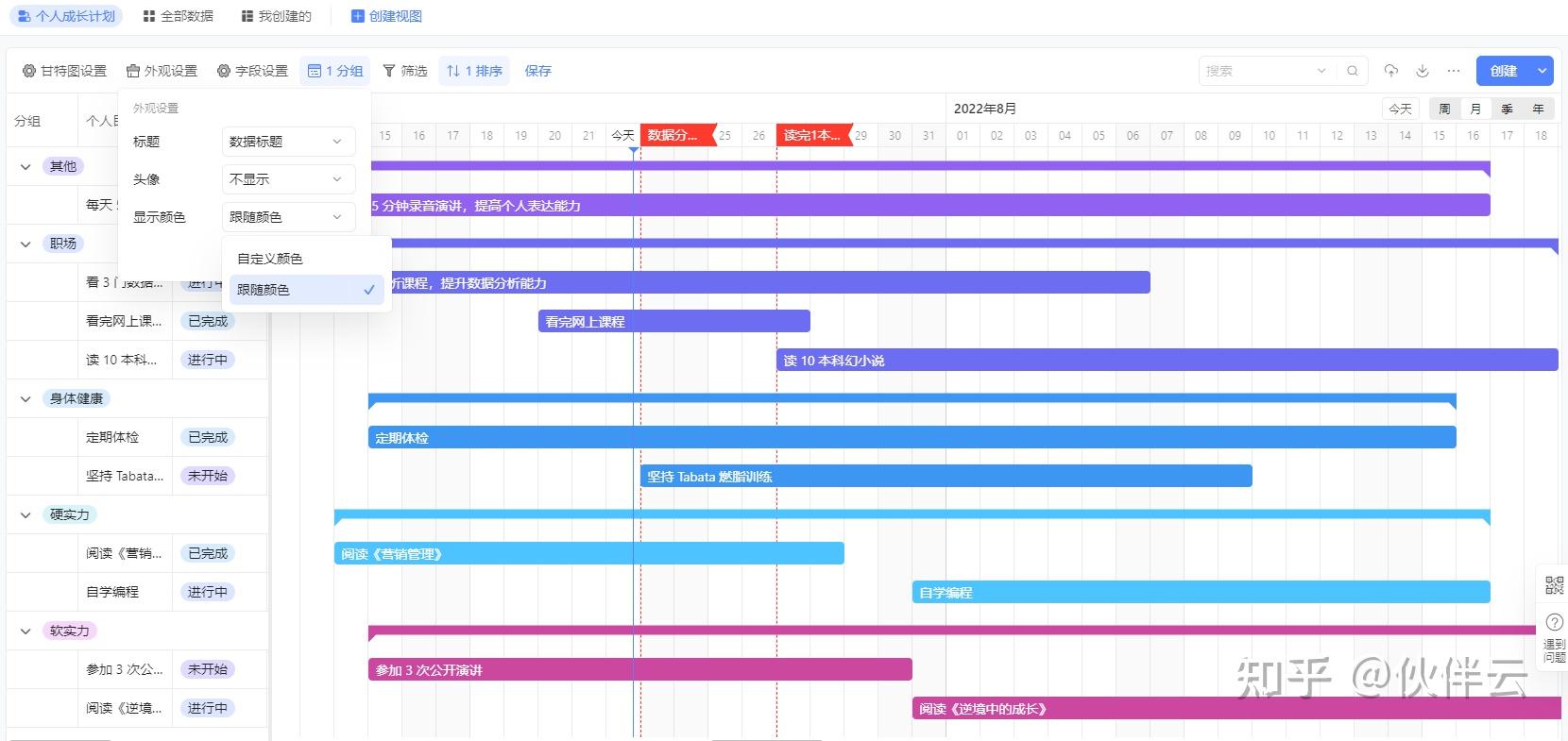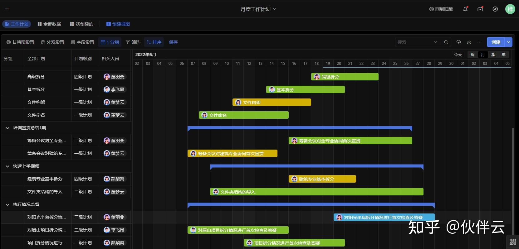 下面这两张是我用伙伴云制作出来的甘特图,别的咱先不说,就这颜值也是爱了爱了!