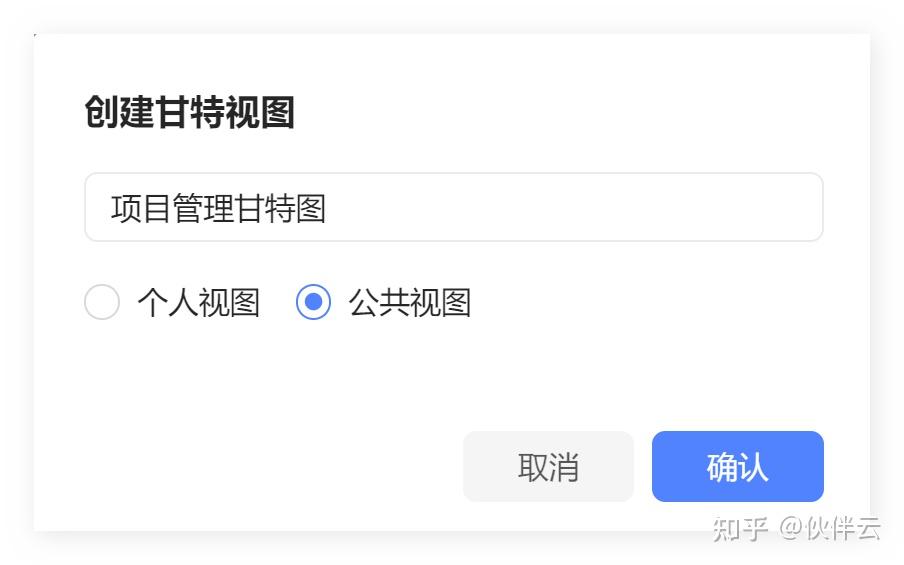 点击顶部视图栏的【创建视图】,选择甘特视图,并输入视图名称。