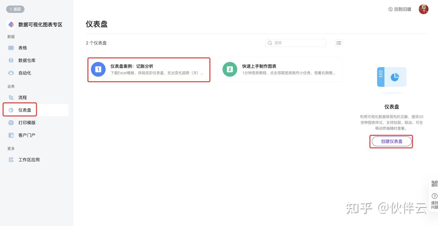 选择仪表盘-创建仪表盘,进入仪表盘创建页面,这里我们为其命名为“仪表盘案例:记账分析”。