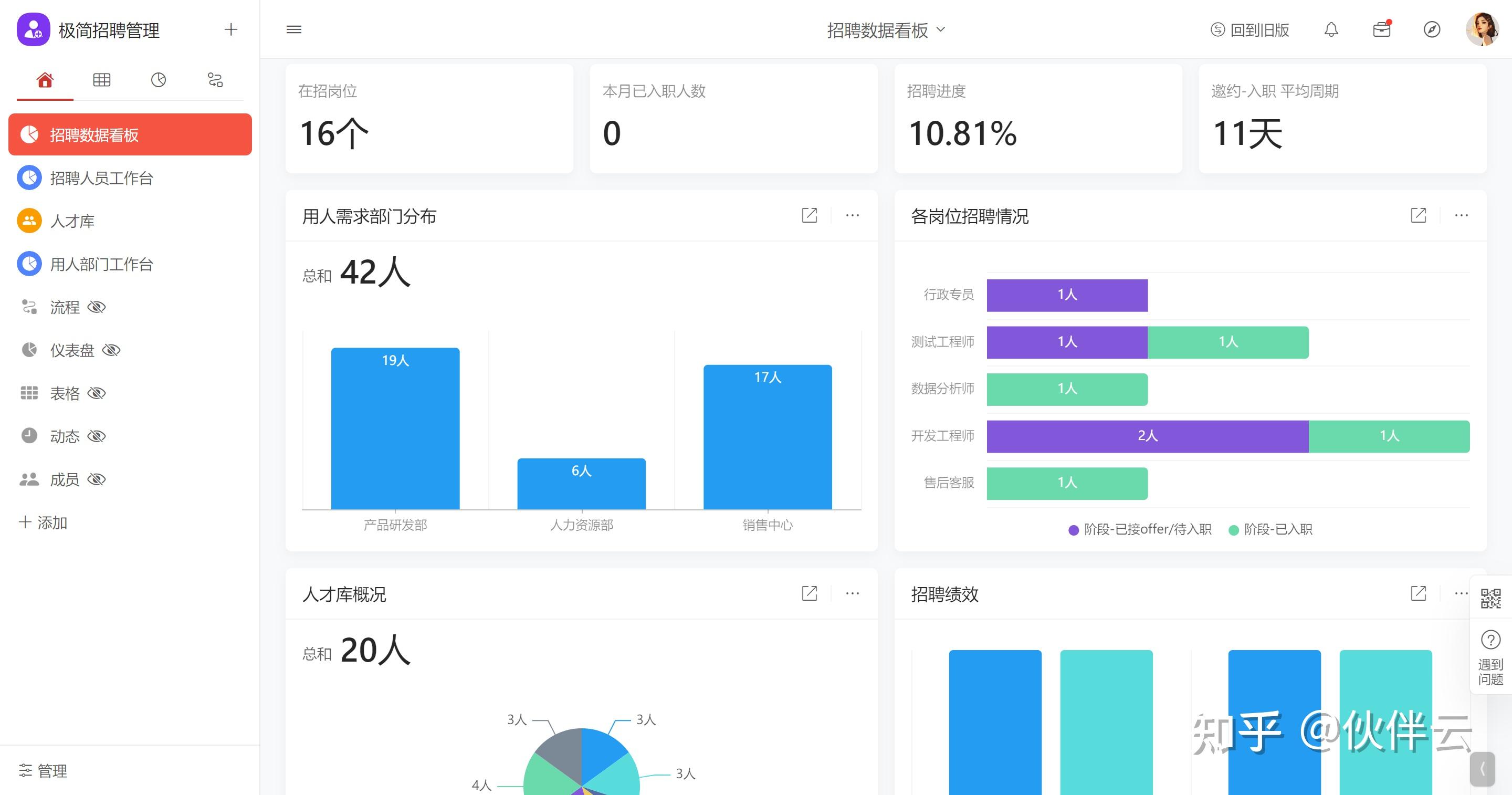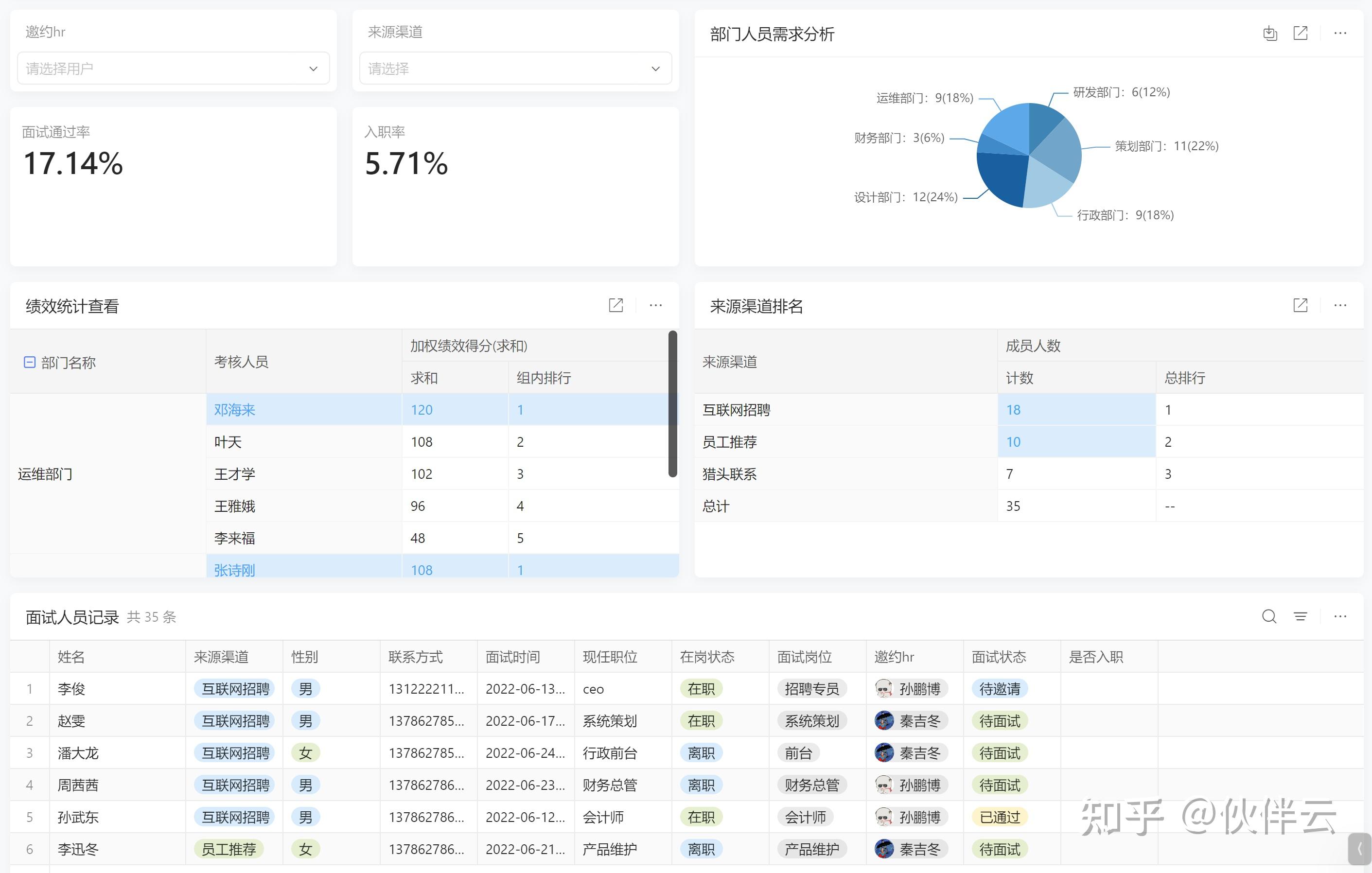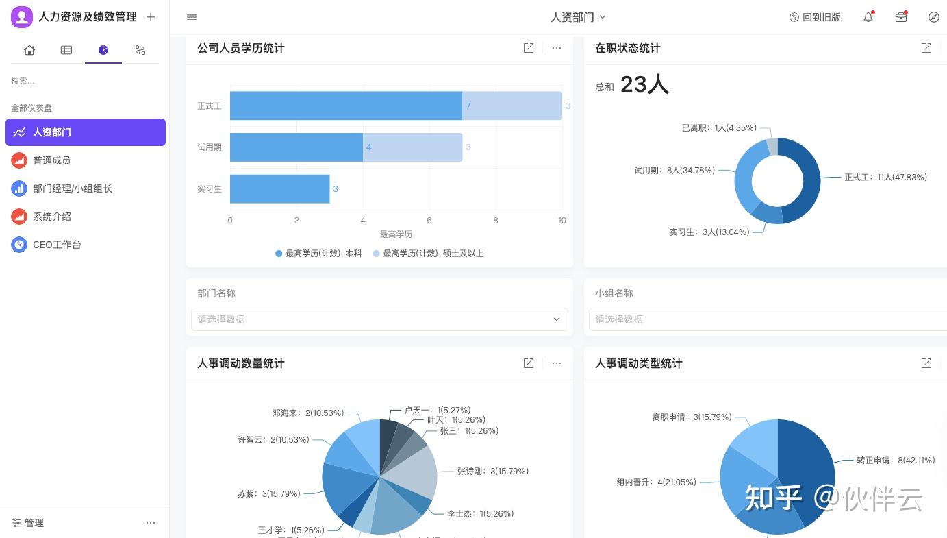 伙伴云人事管理系统覆盖了招聘、绩效、薪酬、人员结构等人力资源模块,可拿来即用,相信能帮你快速做好数据分析。