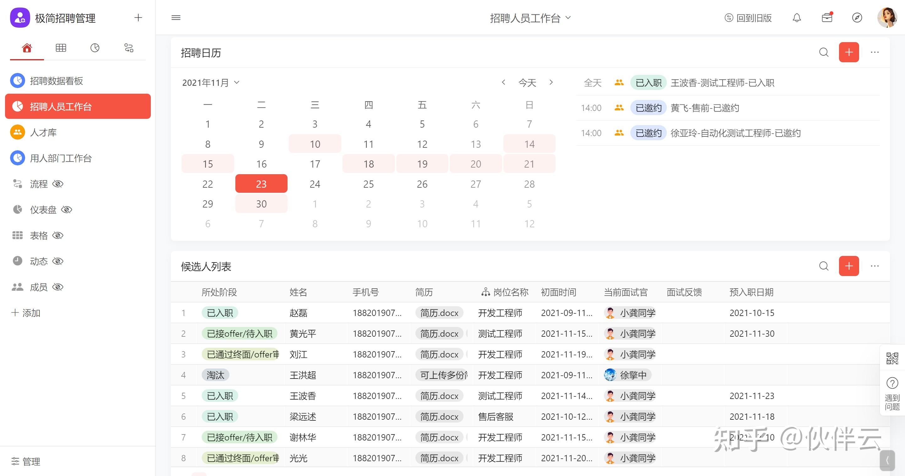 伙伴云提供的极简招聘模版,可以直接套用!只需要将相关数据填进去,就可以自动生成报表,可以减少80%的招聘做表时间!