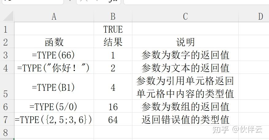 以整数形式返回值的数据类型,数值=1,文本=2,逻辑值=4,错误值=16,数组=64,复合数据=128