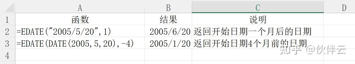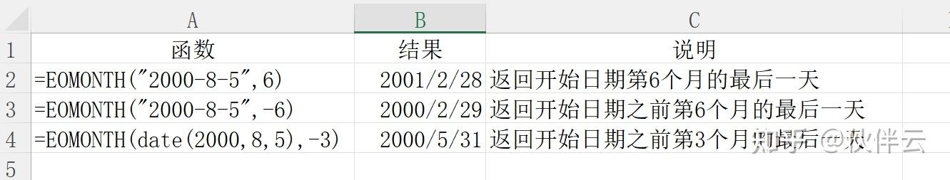 返回一串日期,指示起始月数之前/之后的月份的最后一天。