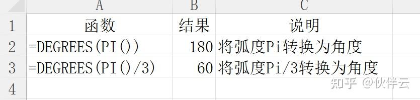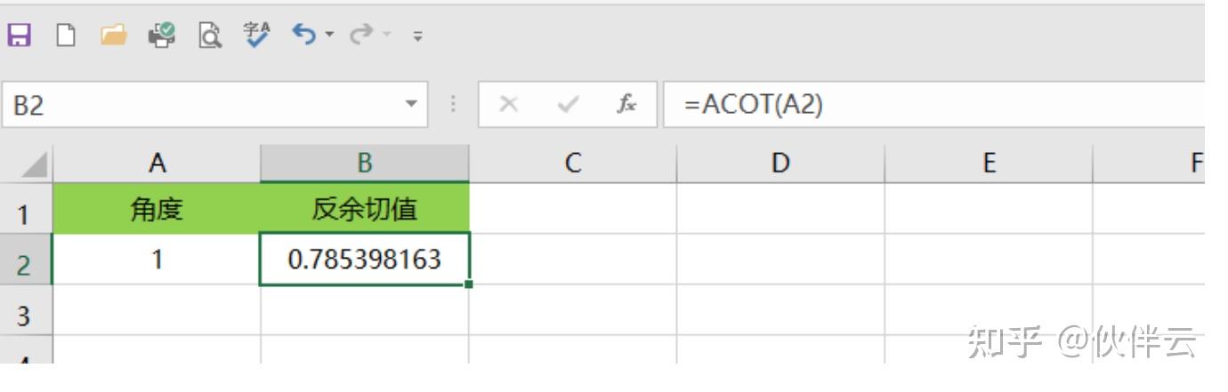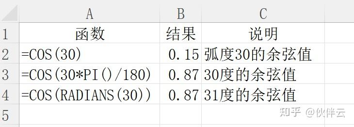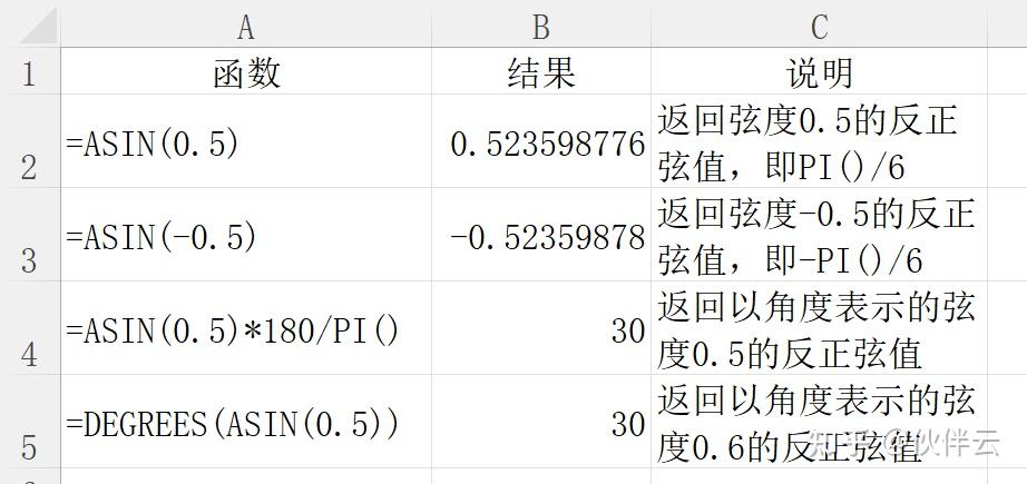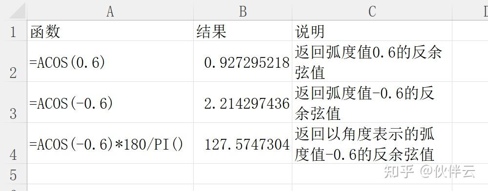 返回一个弧度的反余弦,弧度值在0到pi之间,反余弦值是指余弦值为Number的角度。