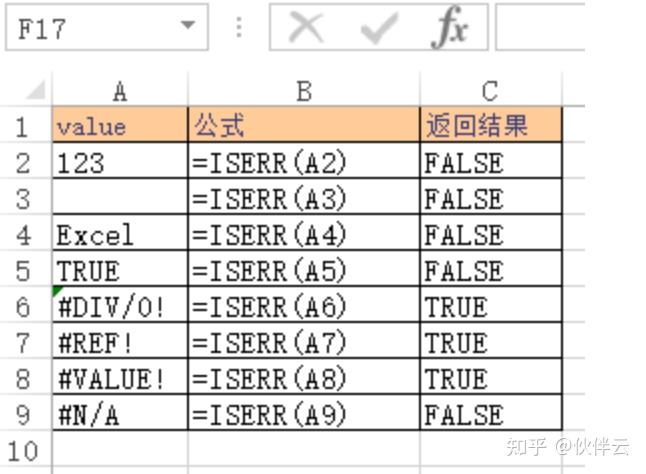 检查一个值是否为#N/A以外的错误,返回TRUE/FALSE