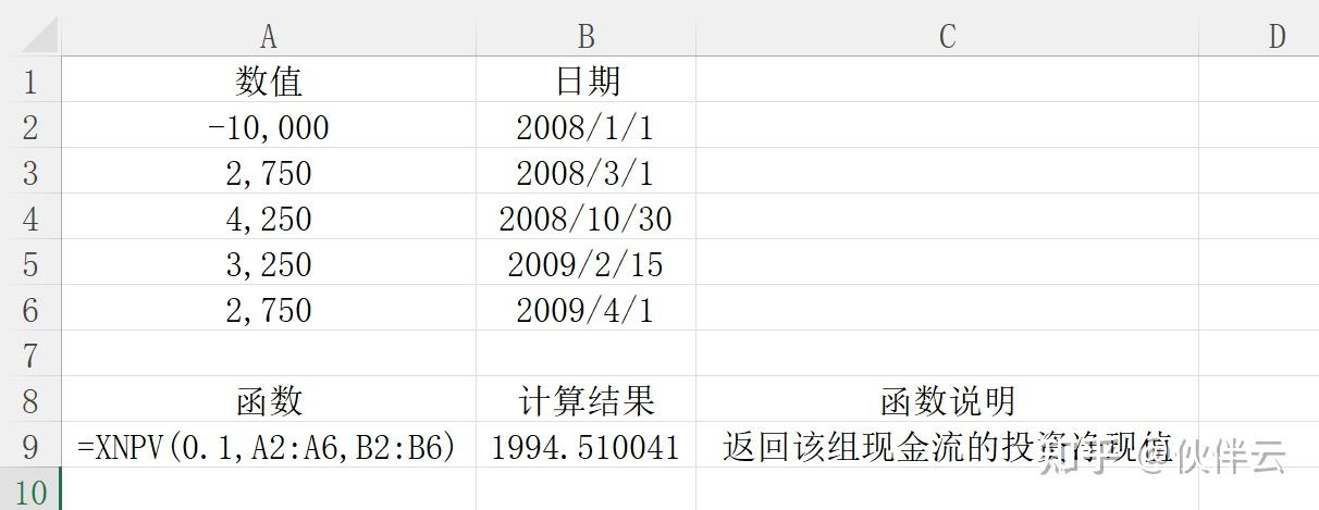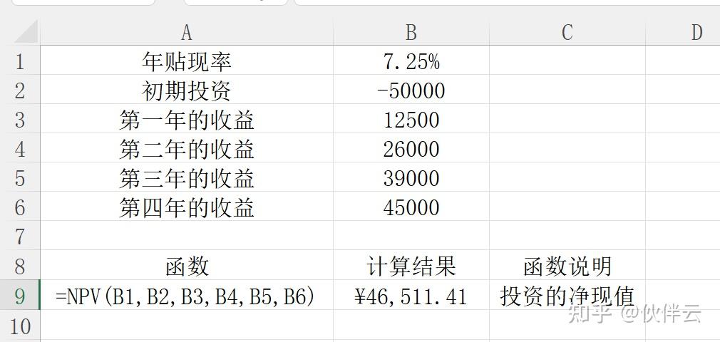 基于一系列将来的收(正值)支(负值)现金流和一贴现率,返回一项投资的净现值