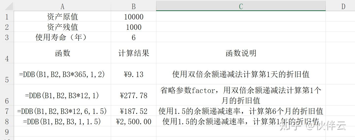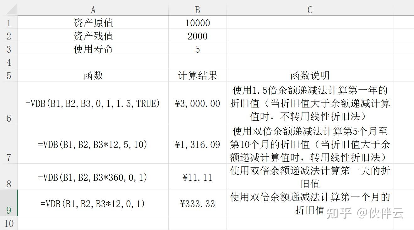用双倍余额递减法或其他指定方法,返回指定期间内某项固定资产的折旧值