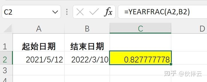 返回一个年分数,表示start_date和end_date之间的整天天数。