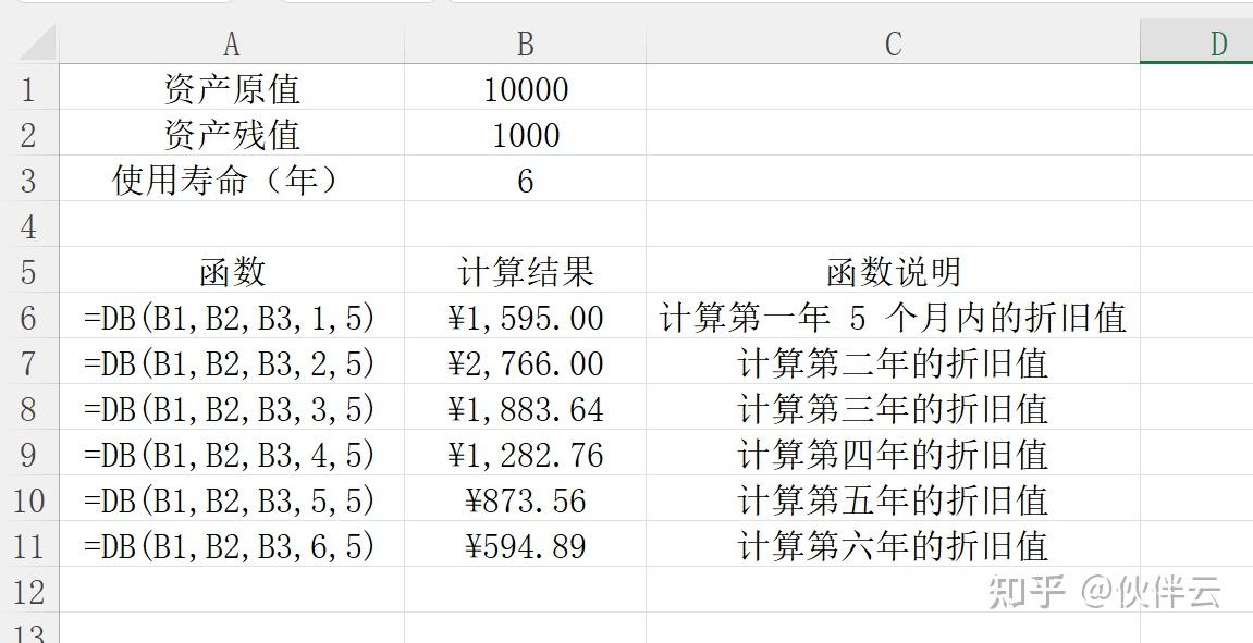 用固定余额递减法,返回指定期间内某项固定资产的折旧值