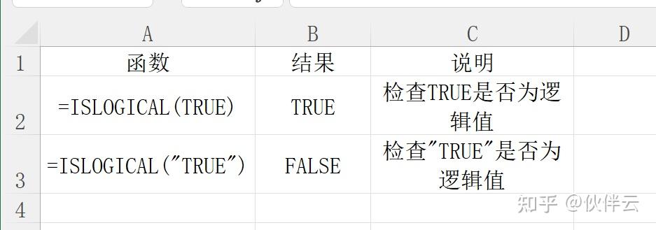 检查一个值是否是逻辑值(RUE/FALSE),返回RUE/FALSE