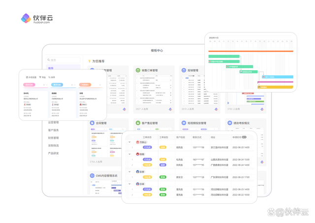 在伙伴云,5分钟创建一个应用,3小时交付一个业务场景,5天落地一个全业务仪表盘,无需开发即可搭建出面向不同行业和场景的管理系统。不仅可以搭建数据协作网络,形成企业数据流程闭环,还可以加深企业部门、员工之间的数据协作,即使是中小团队也能快速建立起自己的业务数据和协作体系,省去传统代码开发的高成本流程。