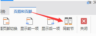 2、双击这一页的页眉,点击页眉和页脚-同前节。然后在这一页的下一页也进行同样的操作来取消同前节。