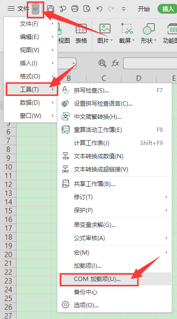 1.检查COM加载项;点击文件右侧的小三角-工具-COM加载项,看是否显示空白,若有加载项请取消加载项看是否正常