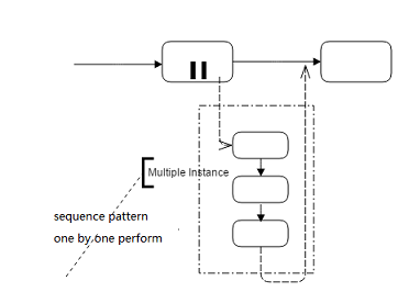 multiple performers processing a task together by multiple task instances. All performers both compete for their task, then the process can be continued on. There are sequence and parallel pattern, and the percentage or count parameters can be set on it to ensue when can go to the next step.