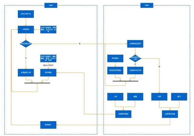 调度层汇总了所有仓库的库存(仓库可能有多个),调度层负责向销售层同步商品库存,并供各大平台上的订单下载后在OMS(订单管理系统)占用/扣减/释放/返还,产生缺货信息。