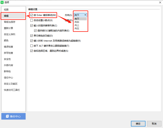 2.依次点击“编辑”,勾选按Enter键后移动,进行设置即可。