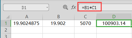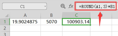 或直接在C1单元格输入=ROUND(A1,3)*B1即可
