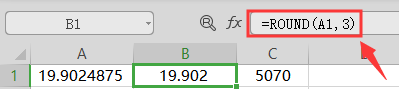1、打开表格,中间增加一列,输入公式=ROUND(A1,3),即是保留三位小数的答案