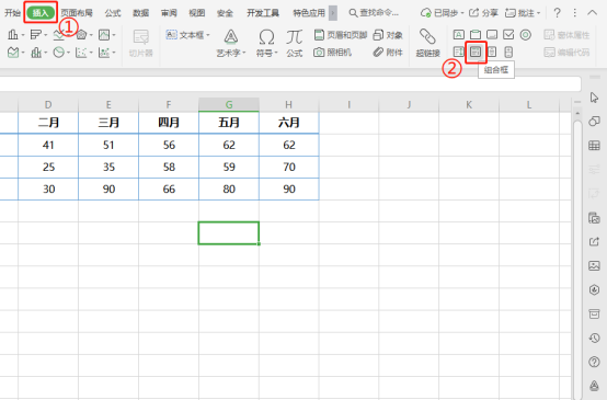 依次点击“插入”—“组合框”,在表格内插入组合框。