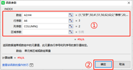 “行序数”表示要引用的行的序数,这里选择(A6);