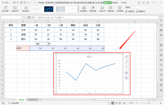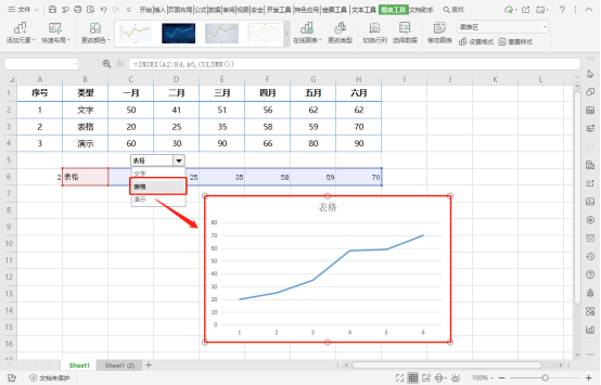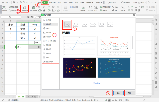 选中上述函数生成的数据,依次点击“插入”—“函数”,根据需要选择一种图表类型插入;