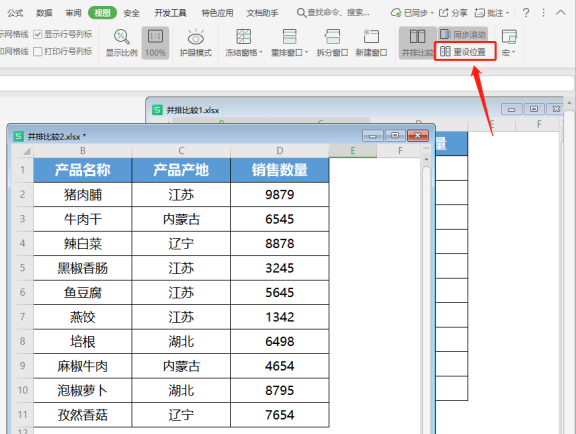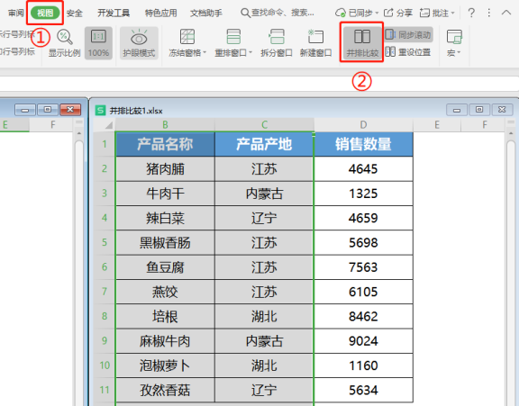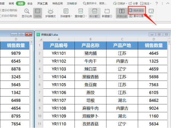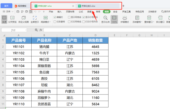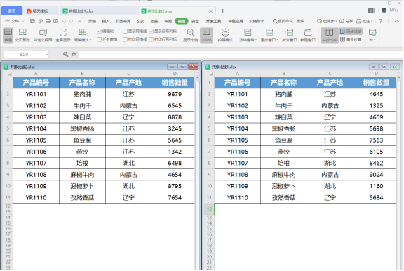 3.完成上述操作后可以将不同表格并排显示 ,“并排比较”效果如下图所示。