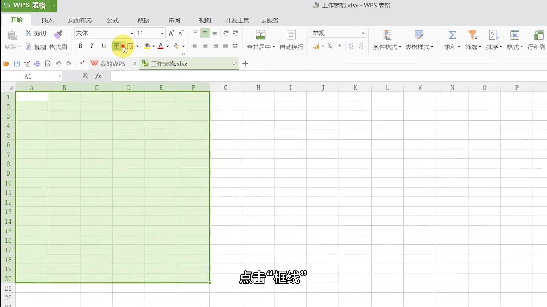 选中所需创建的表格,点击“框线”