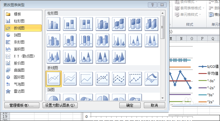 4、先后选中除S/CO值以外的折线,右击更改系列图表类型,将折线更改为不带数据标记的折线