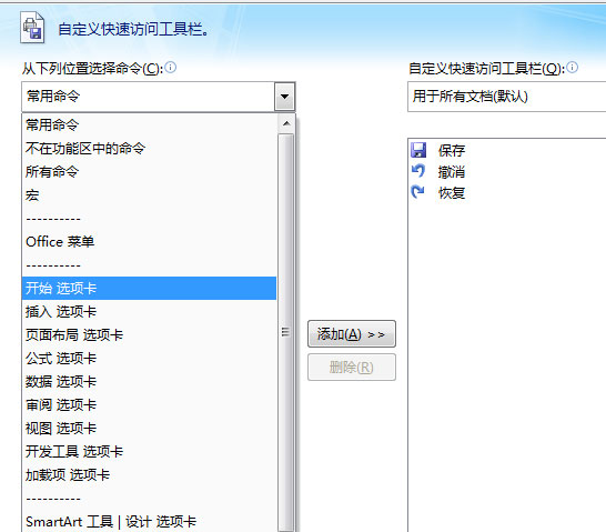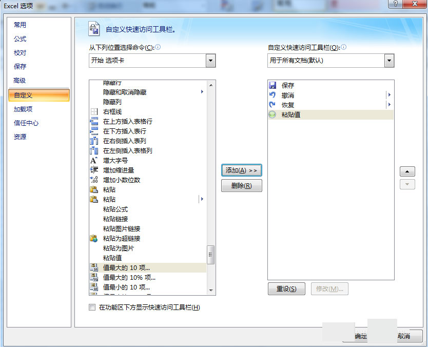 把EXCEL选择性粘贴数值设置在自定义快速访问工具栏
