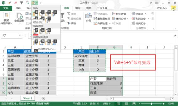 3、添加后,将在快速功能区看到你的粘帖,我的位置是在第五位,每个人的顺序不一样,可以按“alt”查看。本次演示为“Alt+5+V”即可完成数值粘帖。此顺序是可以调整的。