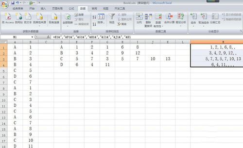 7、如果要把内容放在一个单元格里,可利用连字符组合,公式=E1&","&F1&","&G1&","&H1&","&I1&","&J1&","&K1,下拉。