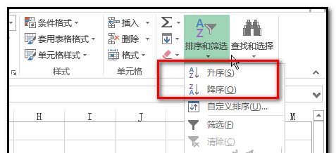 3、弹出的菜单中点;升序或降序,在本例中两者都可以,不影响后面的操作,因为要求只需要把相同内容单元格排在一起就OK了。