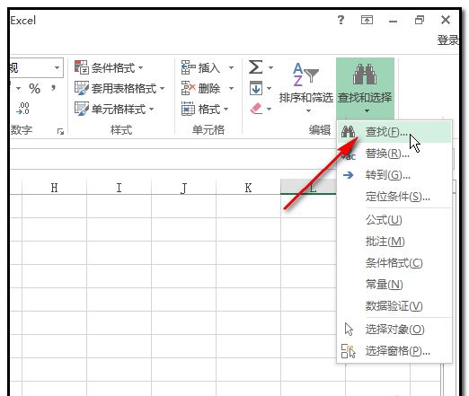 在“开始”选项卡这里,在右侧,点“查找和选择”,如下图所示。