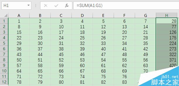 那么现在问题来了,如果需要求的是每一行的和,怎么办呢?这里有个小技巧,就是选中所有数据时,要多选出一个空白的列,这样在按Alt+=键之后,那个空白列中,就会显示出每一行的求和啦。